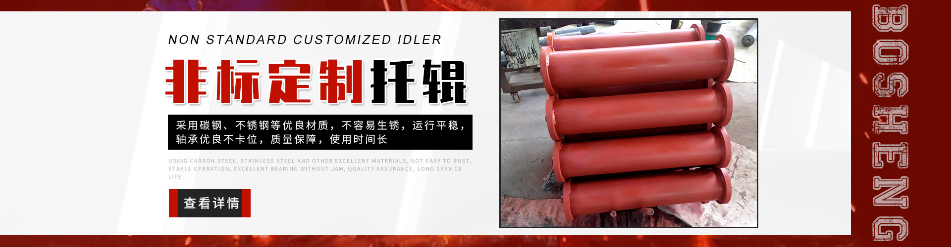 泰安博晟礦山機(jī)械有限公司位于山東泰安新泰市汶南鎮(zhèn)陳糧村。緊鄰京滬、京福、萊新高速公路。公路交通極為方便,環(huán)境優(yōu)美。公司主要生產(chǎn):托輥、托輥配件、托輥支架等皮帶輸送機(jī)配件。歡迎各界商友前來洽談考察。聯(lián)系電話:13954880316.   泰安博晟礦山機(jī)械有限公司采用國際標(biāo)準(zhǔn)設(shè)計(jì)、制造技術(shù),將托輥的設(shè)計(jì)和制造提高到了一個(gè)更高的水平,生產(chǎn)的托輥具有小的旋轉(zhuǎn)阻力,長的壽命,小的維修工作量和高的承載能力。鋼管采用托輥專用高頻焊管,管內(nèi)做去刺處理,圓度控制在特殊的公差范圍之內(nèi)。軸是按標(biāo)準(zhǔn)公差加工的冷拉鋼制造。軸承座采用進(jìn)口冷扎鋼板經(jīng)多次工藝沖壓而成。托輥管和軸承座被自動焊接機(jī)械手焊接在一起,形成一個(gè)具有很高強(qiáng)度的整體構(gòu)造。托輥軸承采用國內(nèi)外知名品牌的大游隙深溝球雙密封軸承,使托輥具有理想的靜平衡和動平衡,其旋轉(zhuǎn)阻力優(yōu)于國標(biāo)。托輥密封采用綜合國外和國內(nèi)迷宮式密封的特點(diǎn)進(jìn)行了專門設(shè)計(jì),內(nèi)充耐高速高溫和超低溫抗氧化鋰基酯,有效防止雜質(zhì)、水、空氣對托輥內(nèi)部的侵蝕。   目前我們托輥系列產(chǎn)品有槽形上調(diào)心托輥組、槽形托輥、槽形下調(diào)心托輥組、承載托輥、緩沖托輥、回程托輥組、螺旋托輥、摩擦上調(diào)心托輥組、平行緩沖托輥組、平行上調(diào)心托輥、礦用托輥、煤礦專用托輥、梳型托輥、樹脂托輥、陶瓷托輥、橡膠托輥、錐形托輥、立輥等。規(guī)格:直徑50-219mm;長度190-2600mm。   泰安博晟礦山機(jī)械有限公司竭誠愿與廣大客戶合作,共同發(fā)展開發(fā)新技術(shù)新項(xiàng)目。泰安博晟礦山機(jī)械有限公司秉承